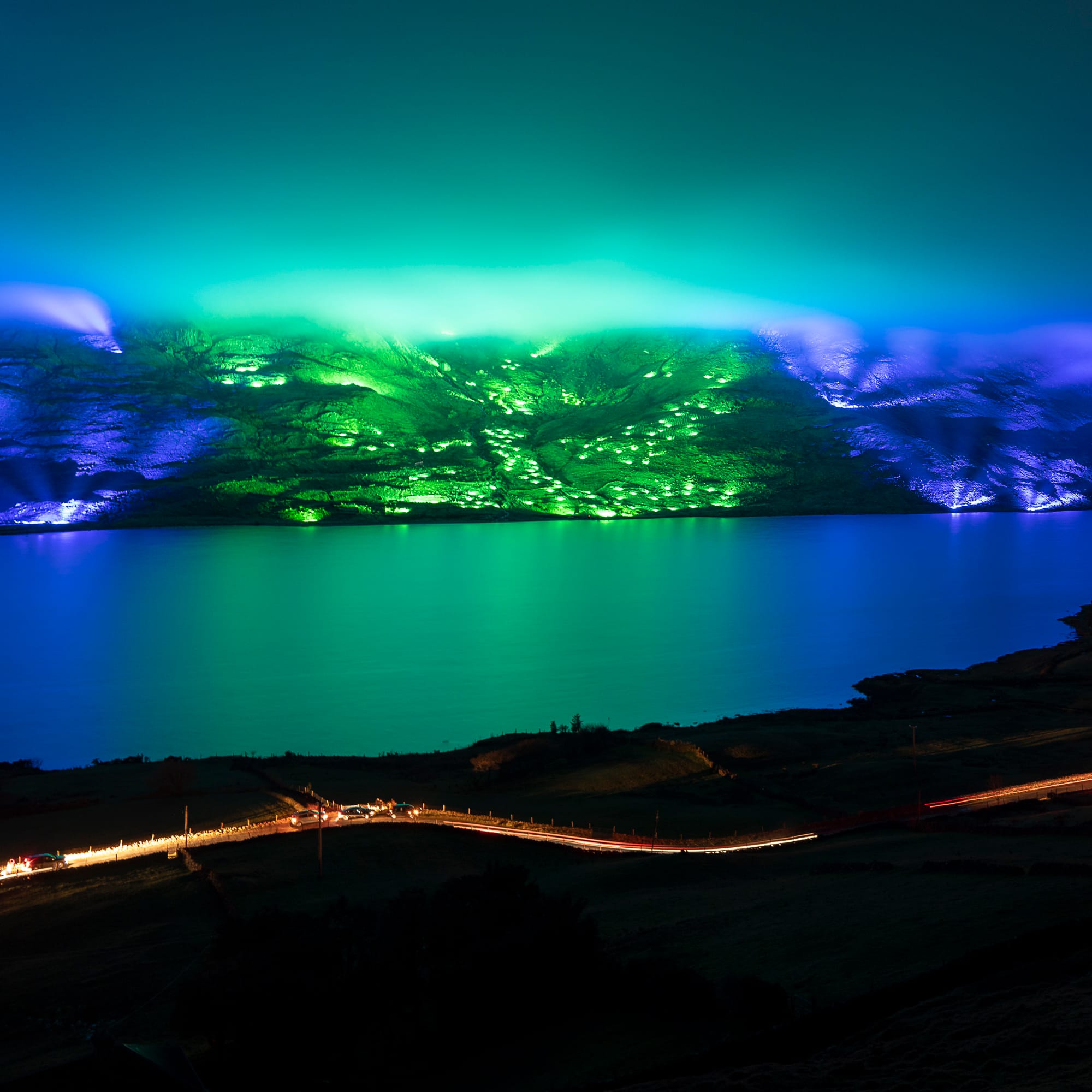 Images from Kari Kola's Savage Beauty illumination of the Connemara mountains in Galway, Ireland in 2020.